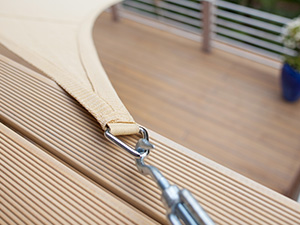 Om uw schaduwdoek aan het spansysteem vast te maken, is het belangrijk te denken aan de karabijnhaak of de sluiting. Deze hulpmiddelen kunnen het rechthoekige schaduwdoek ondersteunen.