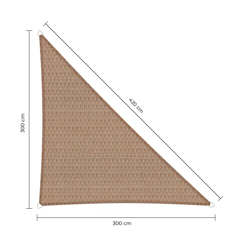 Sunfighters ongelijkzijdig schaduwdoek 3x3x4,2m zand waterdoorlatend